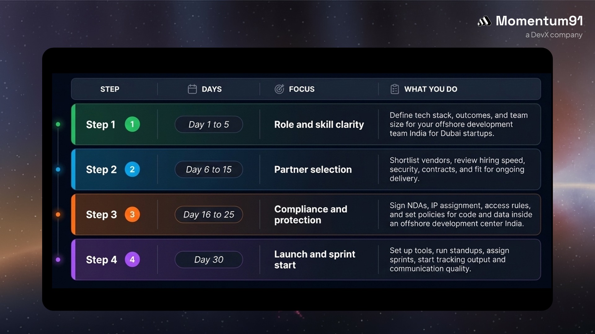 Explore how Momentum91 turns product ideas into working features and keeps your offshore development team in India for Dubai startups stable from day one.