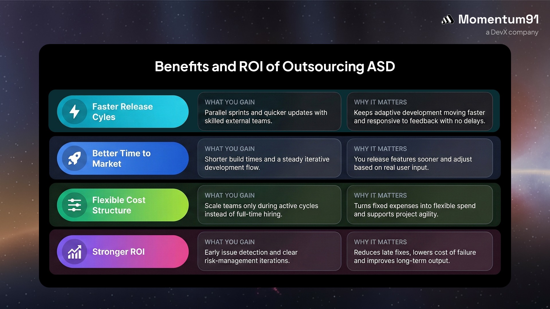 You avoid the cost of building a full in house setup. Outsourcing adaptive software development lets you scale only during active sprints. This turns fixed expenses into flexible spending and improves the financial side of iterative work.